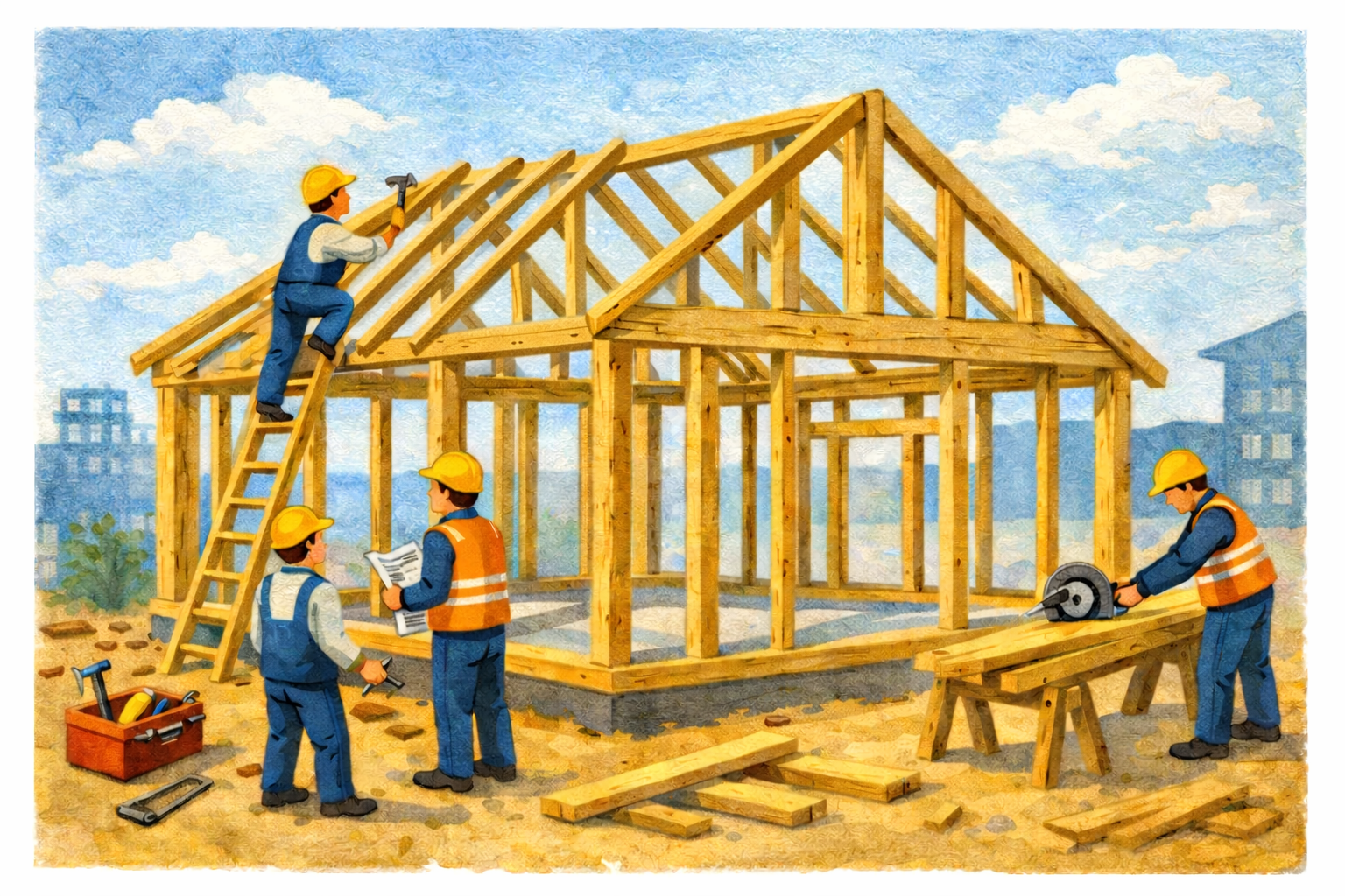 • drewniany: niskie–średnie (kontrakt, prefabrykacja)
